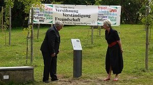 Stadträtin Brigitte Bergholter weihte im Namen der Stadt Kassel das Namensschild des Ginkgo-Hains ein. Der Ehrenvorsitzende des Landesverbandes Hessen Oberst a.D. Jürgen Damm bedankte sich im Namen der Kriegsgräberfürsorge für das Engagement der Stadt Kassel und betonte die Bedeutung von aktiver Friedensarbeit, sowie von Erinnerung und Gedenken als verbindendes Element für die Gesellschaft.