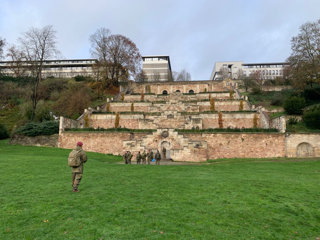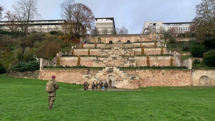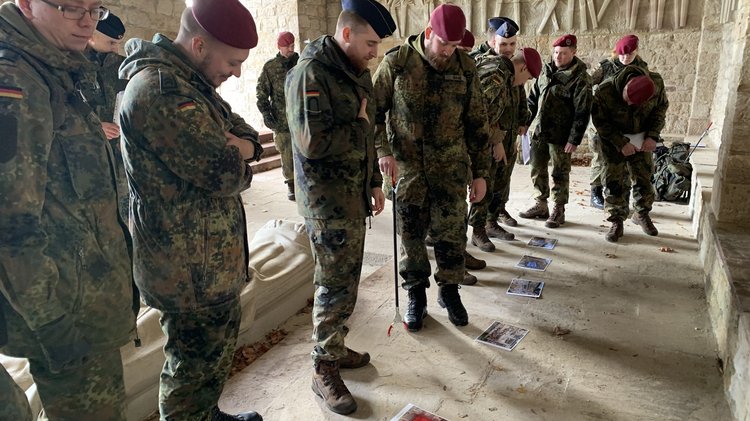 Vier Ausbildungslehrgänge der Bundeswehr, Abteilung Schnelle Kräfte, haben am 22. und 24. November und am 12. Dezember mit dem Landesverband Hessen im Volksbund die Kasseler Gedenkstätte besucht, die im Volksmund noch immer als „Ehrenmal“ bezeichnet wird.