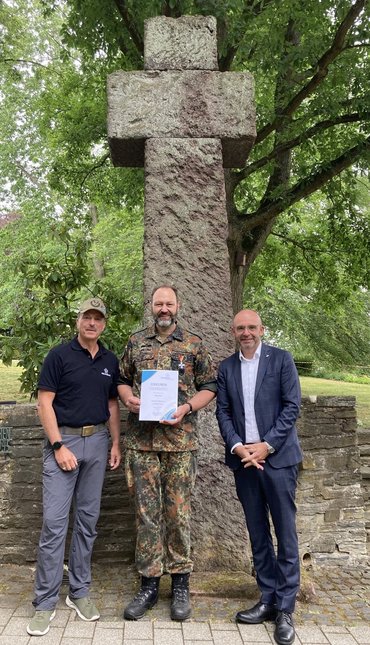 Oberstlt d. R. Jörg Fried wurde am 1. Juli 2023 im Rahmen eines Arbeitseinsatzes auf der Kriegsgräberstätte Idstein (Rheingau-Taunus-Kreis) mit dem Goldenen Kreuz des Volksbundes ausgezeichnet. Diese Ehrung wurde ihm zuteil, weil er sich seit Jahrzehnten für den Volksbund und dessen Ziele engagiert einsetzt. Wir sagen Danke.