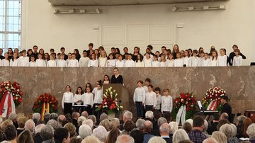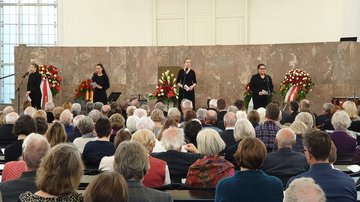 Auch Kulturdezernentin Dr. Ina Hartwig und Staatsminister Peter Beuth riefen in ihren Reden dazu auf, den Frieden in Deutschland zu beschützen und zu bewahren und ihn vor allen Dingen nicht als Selbstverständlichkeit anzusehen.