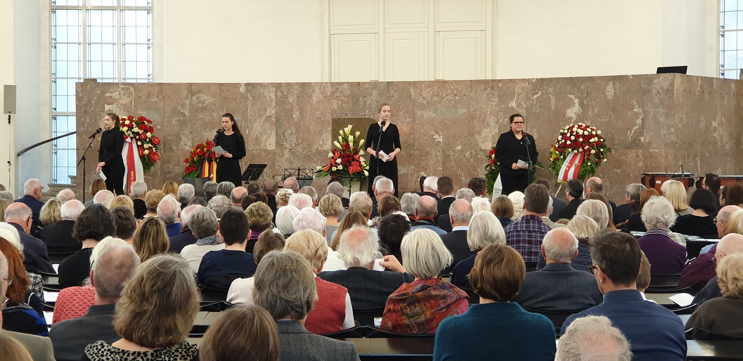 In Abgrenzung zur nationalsozialistischen Beschönigung des Volkstrauertages haben wir den Trauerbegriff dieses Jahr auf Kriegsopfer im Allgemeinen ausgeweitet. Unter der Leitung von Julia Kerfin hat unsere Geschichts-AG den Veranstaltungsablauf erarbeitet und hierbei sowohl mit den Moderationen und Kommentaren als auch mit den ausgewählten literarischen Beiträgen ein berührendes und umfassendes Programm zusammengestellt.