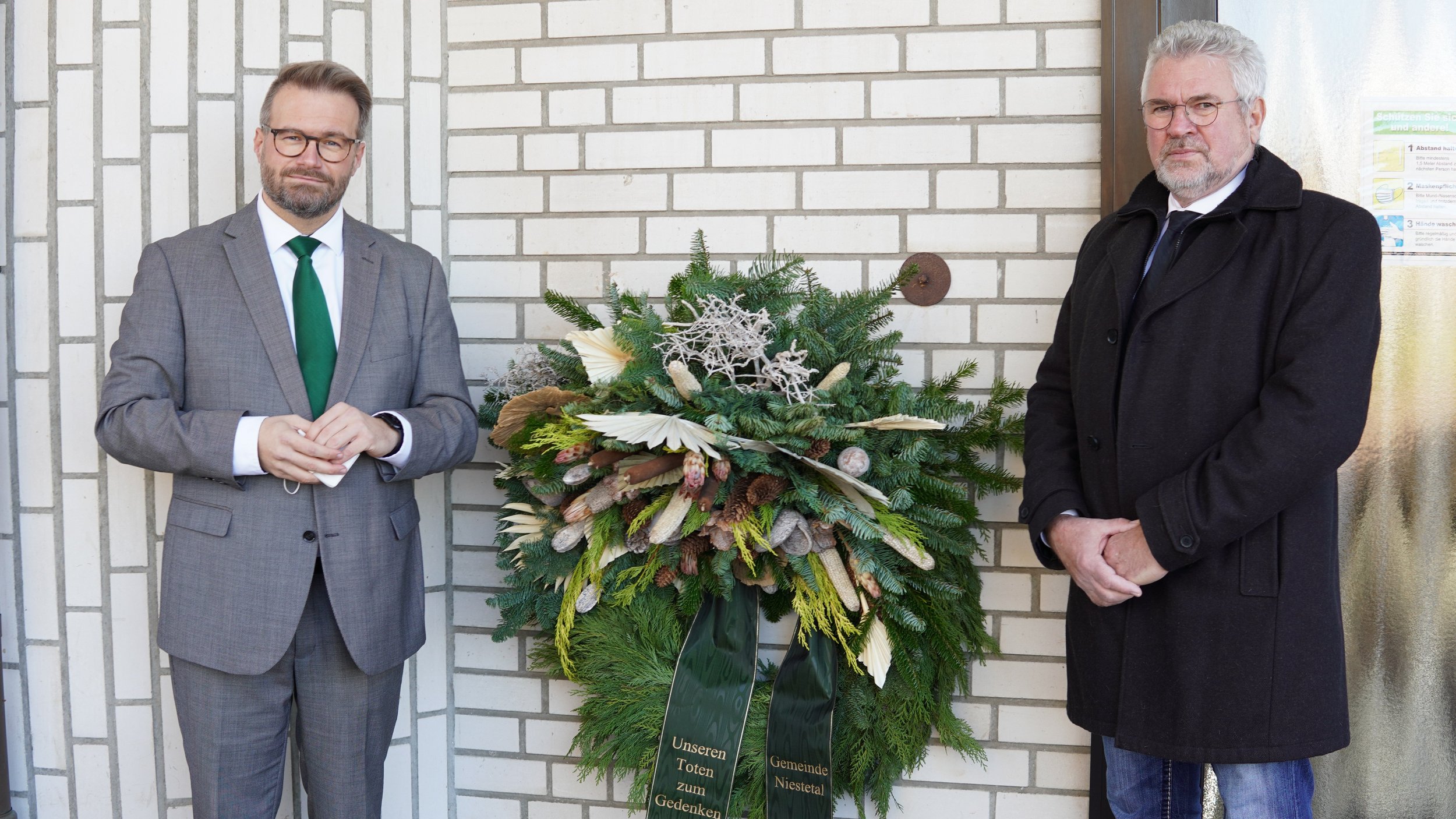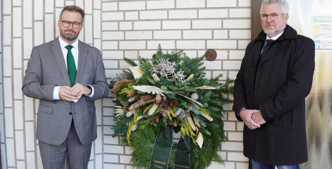 Im Anschluss wurden auf den Friedhöfen Sandershausen und Heiligenrode Kränze niedergelegt. Bürgermeister Brückmann und der Vorsitzende der Gemeindevertretung Volker Hammermüller weihten gleichzeitig die neue Gedenktafel auf dem Heiligenröder Friedhof ein.