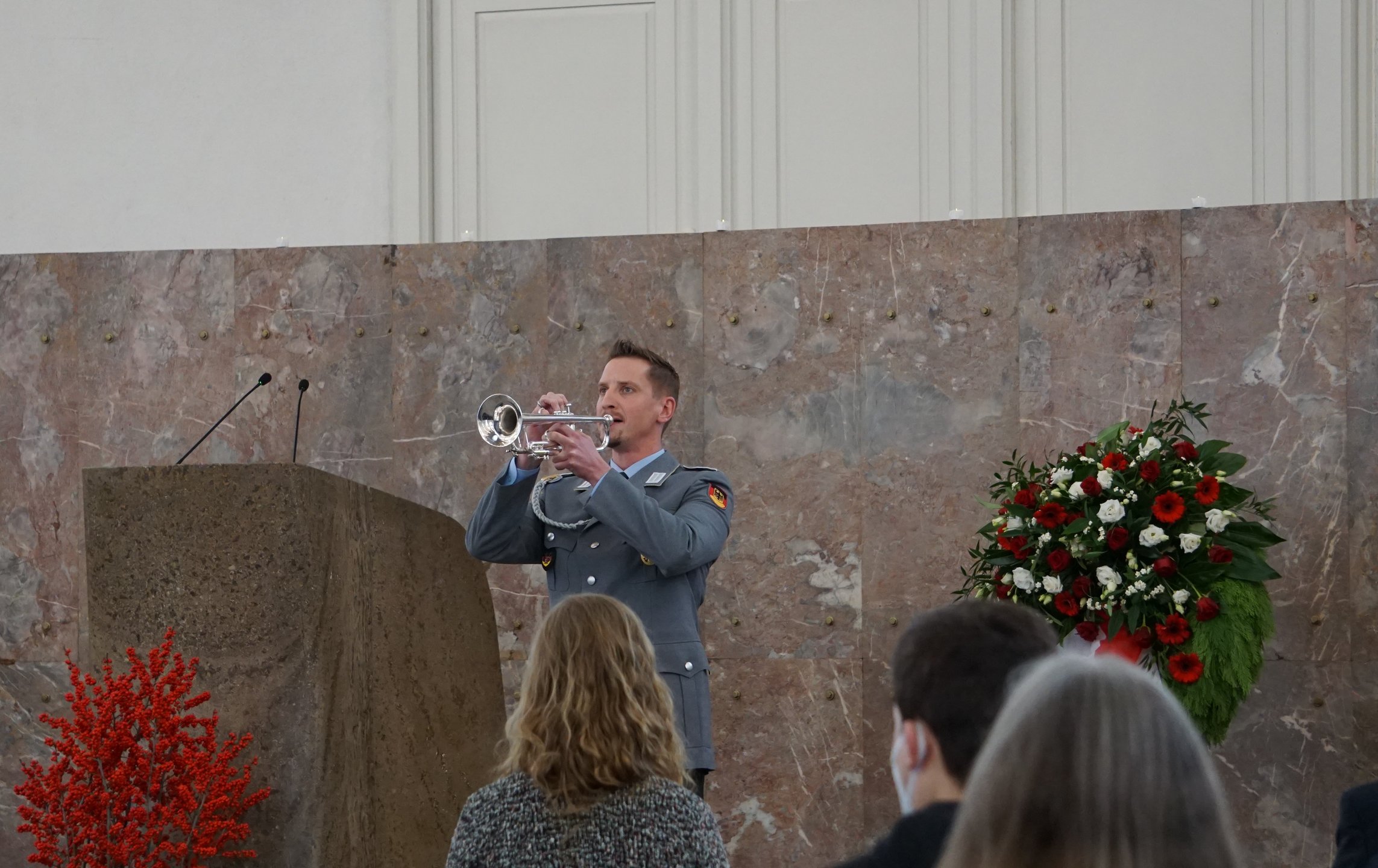 Dass diese Botschaft ein verpflichtender Auftrag an uns Lebende ist, bekundet jährlich auch das zum Volkstrauertag vorgetragene offizielle Totengedenken. Dort heißt es: „Wir gedenken heute auch derer, die bei uns durch Hass und Gewalt Opfer geworden sind. Wir gedenken der Opfer von Terrorismus und Extremismus, Antisemitismus und Rassismus in unserem Land. Wir trauern mit allen, die Leid tragen um die Toten und teilen ihren Schmerz. Aber unser Leben steht im Zeichen der Hoffnung auf Versöhnung unter den Menschen und Völkern, und unsere Verantwortung gilt dem Frieden unter den Menschen zu Hause und in der ganzen Welt.“