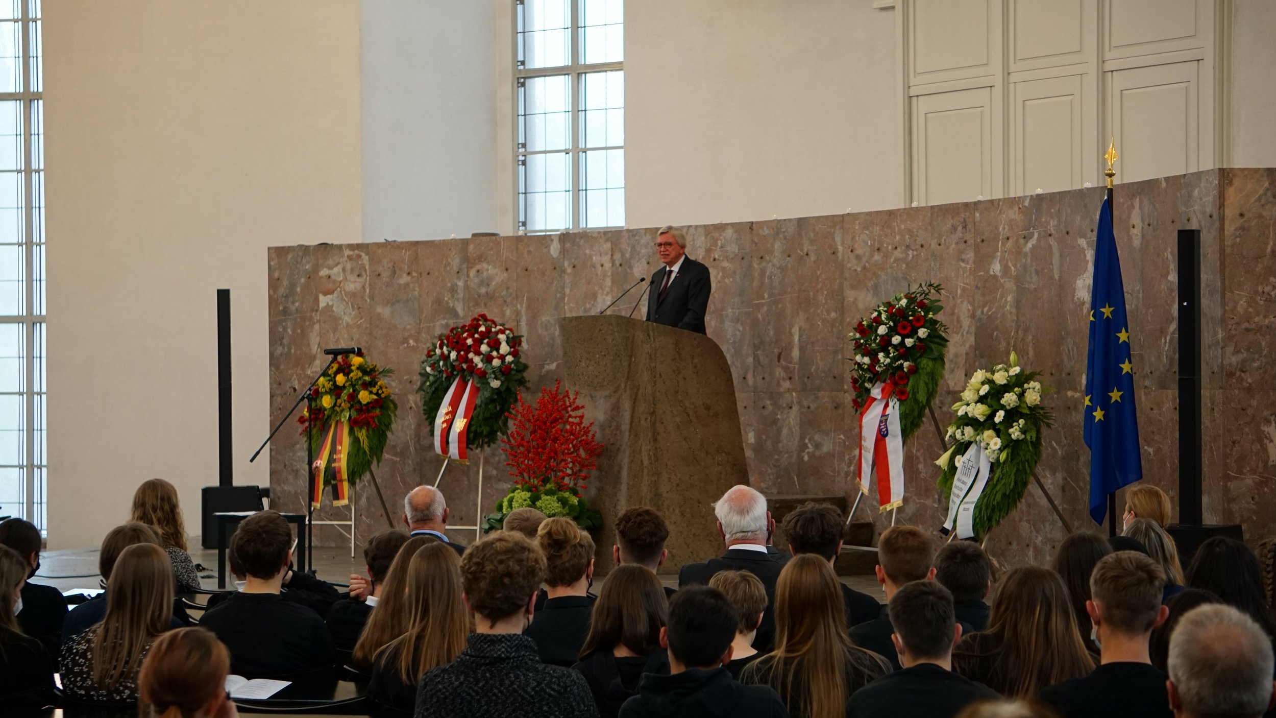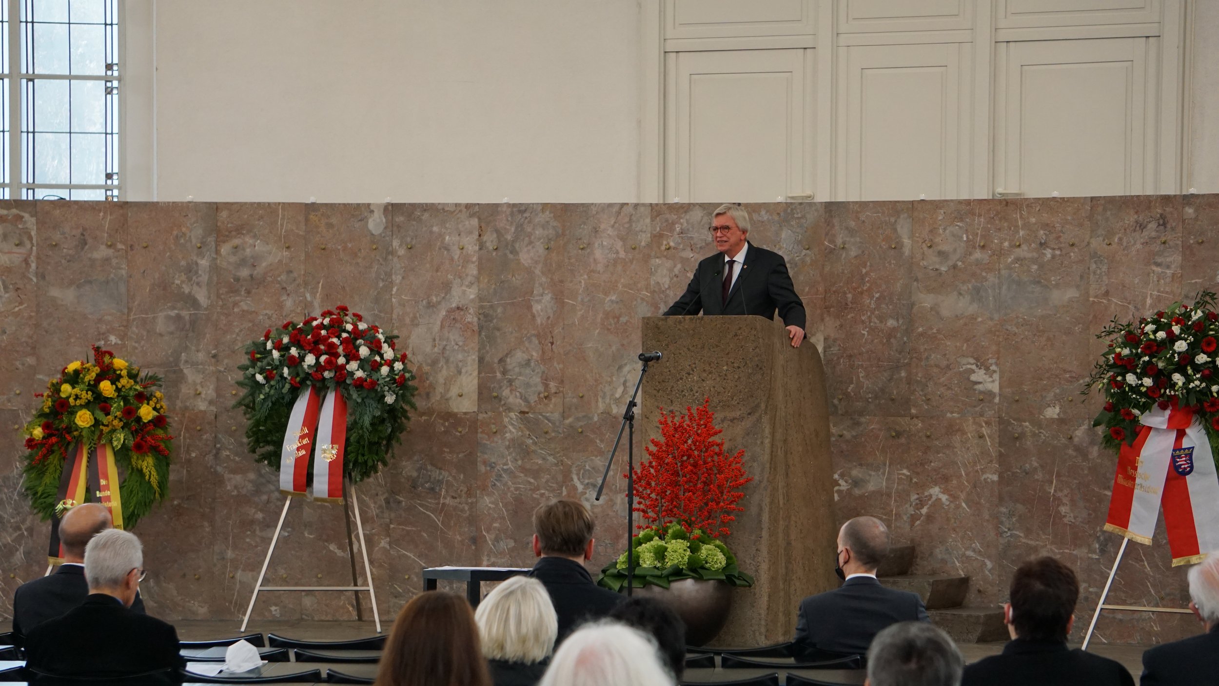 Am Sonntag, dem 14. November 2021 fand in der Paulskirche in Frankfurt am Main die Zentrale Gedenkstunde des Landes Hessen statt. „Erinnern und eine friedliche Zukunft zu gestalten – dies ist der Grundgedanke des Volkstrauertages“, so Staatsminister a. D. Karl Starzacher, der Landesvorsitzende des Volksbundes in Hessen.