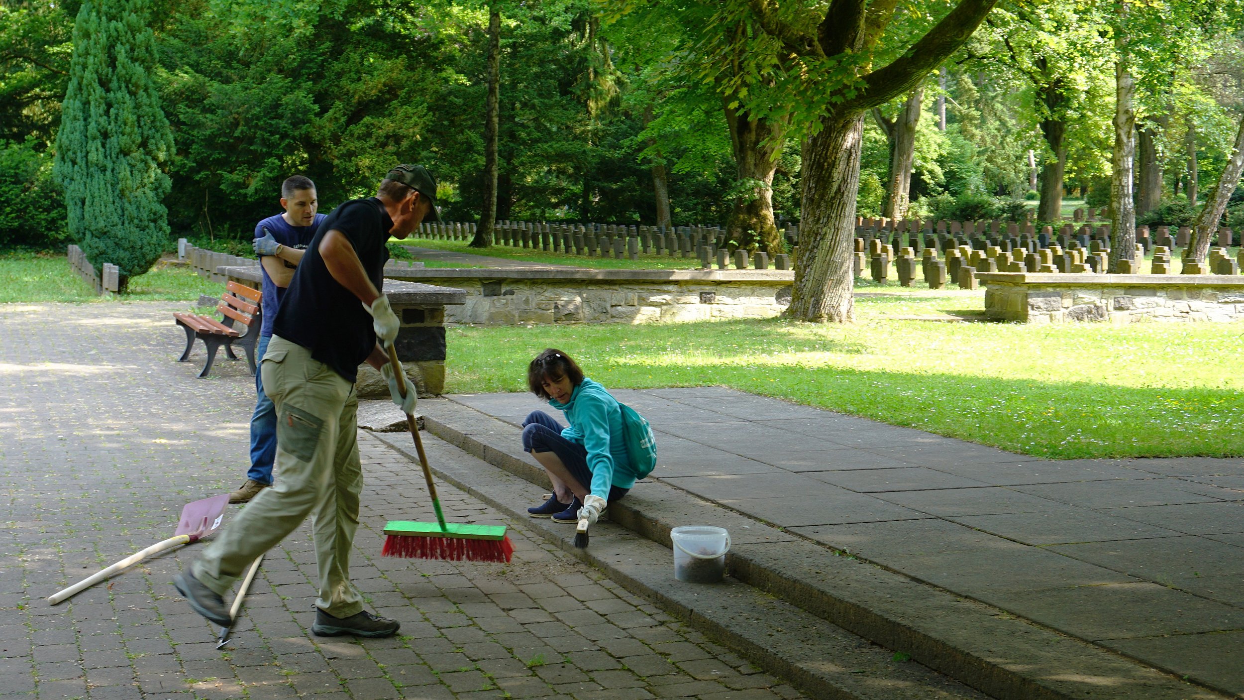 Es könnte zur Tradition werden: Bereits zum zweiten Mal in zwei Jahren griffen Mitarbeiterinnen und Mitarbeiter der Barclays Bank für einen Kriegsgräber-Pflegeeinsatz in Hessen zu Bürsten und Besen.