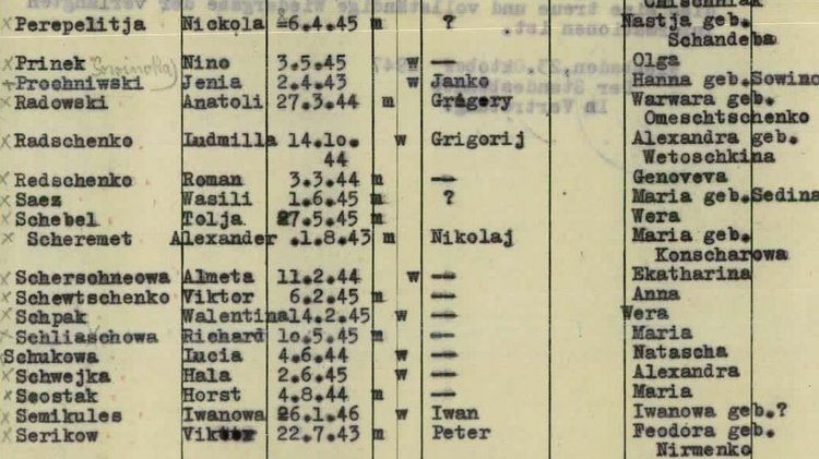 Die Identität der Kinder und ihrer Eltern ist anhand der Schreibweisen ihrer Namen nur schwer zu ermitteln. Namen von polnischen und sowjetischen Kriegsgefangenen, Zwangsarbeiterinnen und Zwangsarbeitern und ihren Kindern wurden in deutschen Dokumenten aus dem Zweiten Weltkrieg zumeist willkürlich geschrieben und sind daher überwiegend nicht zutreffend, sondern in mehr oder weniger entstellter Form überliefert. Den für die Verwaltung der Zwangsarbeit zuständigen Stellen im nationalsozialistischen Deutschland kam es lediglich darauf an, eine Person mit irgendeinem Namen erfassen zu können; ob dieser Name richtig geschrieben war, erschien dabei zweitrangig.