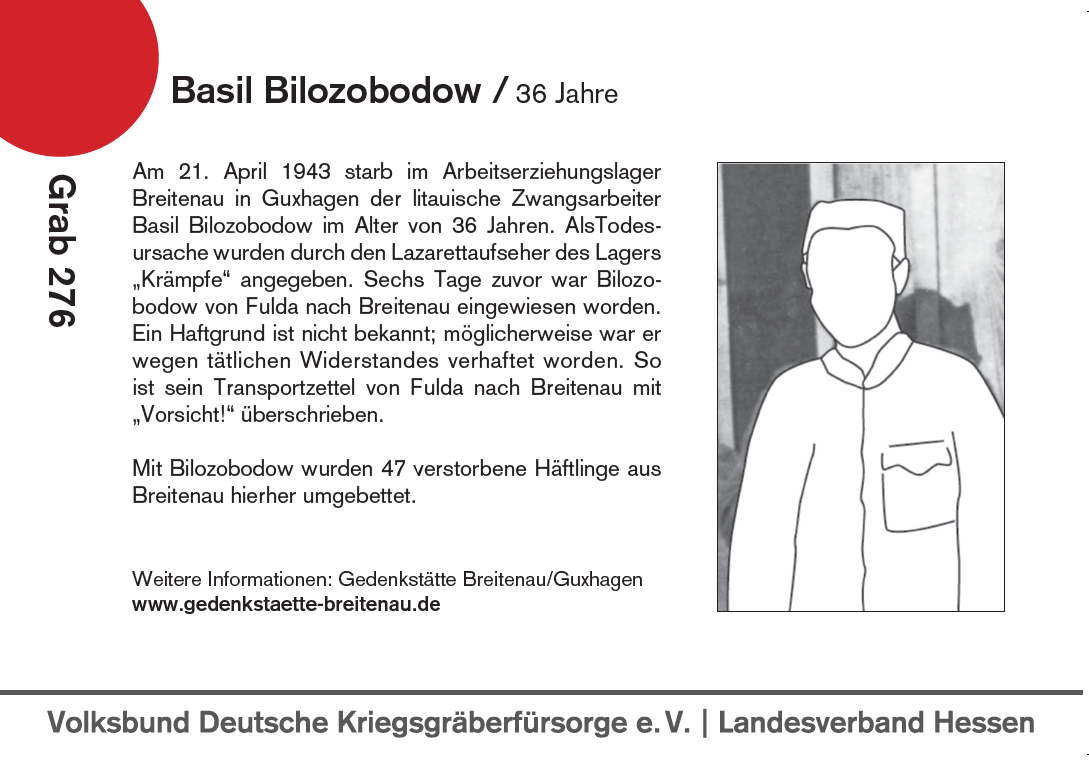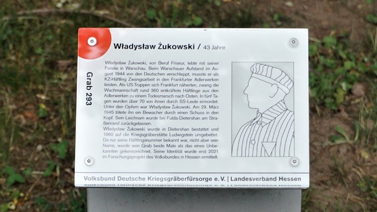 Der Tote, ein KZ-Häftling, hieß Władysław Żukowski und stammte aus Warschau. Auf dem Todesmarsch aus dem KZ »Katzbach« in den Frankfurter Adlerwerken wurde er im März 1945 bei Fulda von einem Bewacher erschossen. Papiere mit seinem Namen trug er nicht bei sich. Sein Leichnam wurde am Straßenrand gefunden und auf dem nächsten Dorffriedhof begraben. Dabei wurde die Häftlingsnummer auf seiner Jacke registriert, wodurch dem Internationalen Suchdienst später seine Identifizierung gelang.