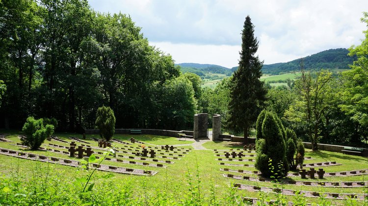 Mit Ausnahme dieser Inschrift in einem der beiden Halbschalentürme des Eingangsbereichs weist die Besucherinnen und Besucher der Kriegsgräberstätte nichts mehr auf die exponierte Lage hin, welche sie zu Zeiten ihrer Entstehung Anfang der 1960er Jahre einnahm. Am 25. Juni 1961 durch den hessischen Ministerpräsidenten Georg August Zinn eingeweiht, sollte dieser Ort nicht nur Friedhof sein, sondern auch ein westdeutsches, antikommunistisches Zeichen über die nahe innerdeutsche Grenze hinweg nach Osten setzen. Dieser Ort wurde damit zu einem politisch stilisierten Platz inmitten der Spannungen des Kalten Krieges.