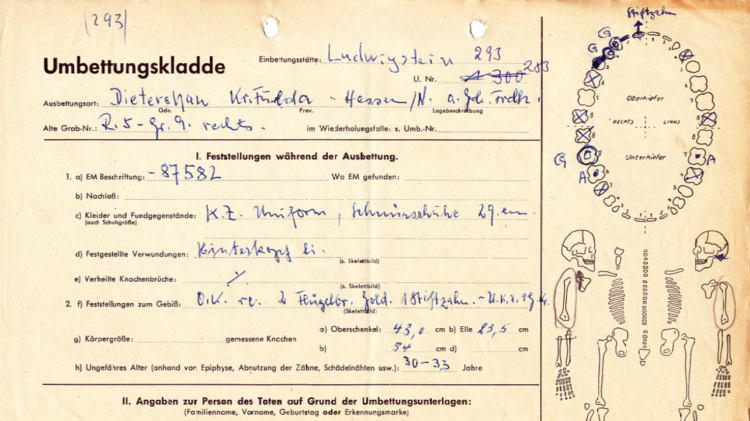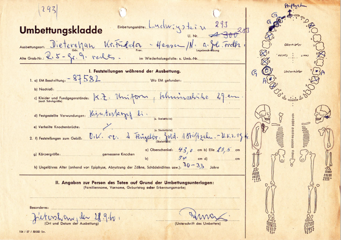 Die Mitarbeiter des Volksbunds hatten davon keine Kenntnis, als sie den Toten auf den Ludwigstein umbetteten. Zudem irrten sie sich beim Ablesen der Häftlingsnummer in einer Ziffer. Der erste Identifizierungsversuch im Forschungsprojekt schlug deshalb 2008 fehl.