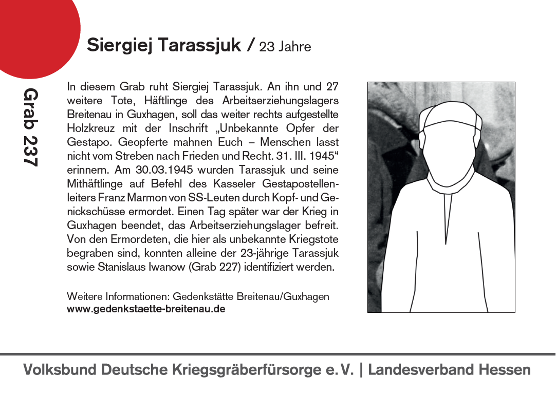 Unter ihnen sind Häftlinge des Arbeitserziehungslagers Breitenau in Guxhagen sowie Männer und Frauen, die in den Sprengstofffabriken in Hessisch-Lichtenau arbeiten mussten. Unter ihnen sind befreite Zwangsarbeiter, die als Displaced Persons zunächst in Nordhessen blieben, und ehemalige Kriegsgefangene, die in einem Flüchtlingskrankenhaus bei Steina der Tuberkulose erlagen und die Rückkehr in ihre Heimat nicht mehr erlebten. Unter ihnen sind Männer und Frauen, die oft unter unmenschlichen Bedingungen Zwangsarbeit im gesamten nordhessischen Raum leisten mussten und dieses nicht überlebten.