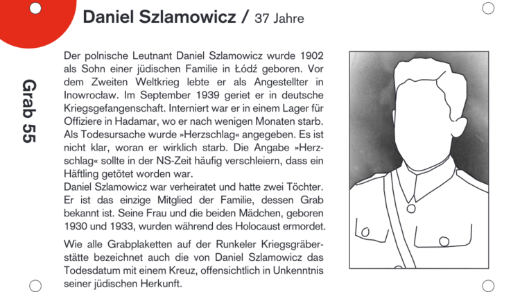 So sind in Runkel mehrere Tote einer »SS-Eisenbahnbaubrigade« bestattet, Häftlinge aus dem KZ Dachau sowie Zwangsarbeiterinnen und Zwangsarbeiter, die in schwerster körperlicher Arbeit und unter ständiger Lebensgefahr von Bomben zerstörte Bahnstrecken instand setzen mussten. Ein Aufseher der Wachmannschaft, der SS-Mann Johann Penkowski, war für seine Brutalität besonders gefürchtet. Er starb im März 1945 bei einem Luftangriff. Als Kriegstoter fand er sein Grab zunächst auf dem Friedhof von Aumenau. Bei der Anlage der Gräberstätte wurde er nach Runkel umgebettet – zusammen mit Wera Schlonskaja, einer Zwangsarbeiterin der Baubrigade, die kurz nach ihrer Befreiung verstorben war. Beide sind in Grabreihe 10 bestatttet, nur durch ein Grab voneinander getrennt.